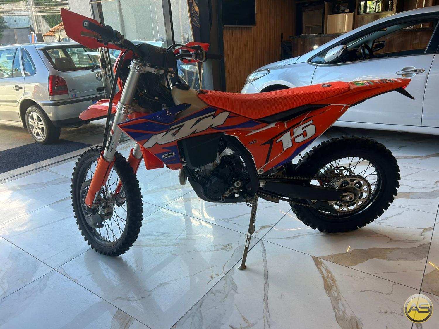 Pneus novos com câmara dupla, protetor de disco dianteiro, protetor de disco traseiro, protetor de escape, protetor de balança, protetor de motor lateral, inferior e link, kit gráfico sem detalhes, capa de banco Dirt Dad, alça lateral, protetor de cubo/corrente, protetor de painel, manual, kit de ferramentas original.